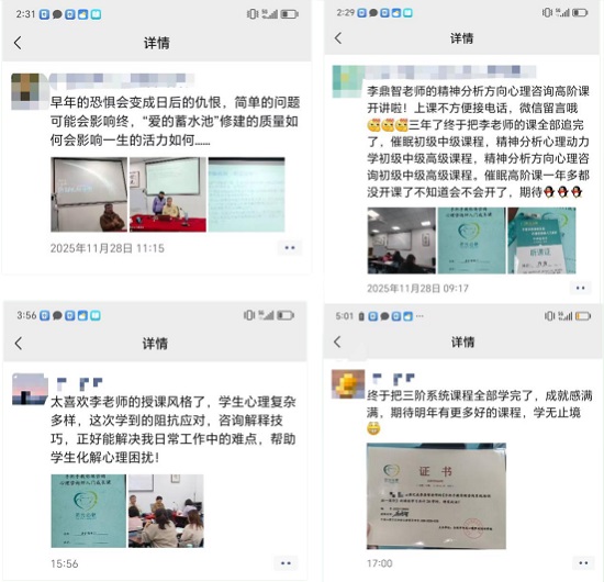 某高校心理健康许老师:学生心理问题复杂多样,这次学到的阻抗应对、咨询解释技巧,正好能解决我们日常辅导中的难点,往后帮学生化解心理困扰时,会更专业、更有底气。