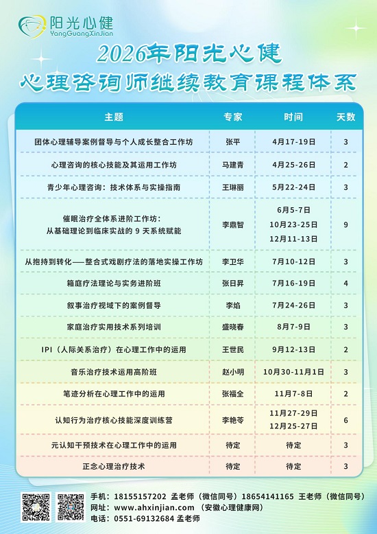 2026年4月25日至26日,由阳光心健主办的马建青教授《心理咨询的核心技能及其运用工作坊》培训课程圆满落幕。本次课程聚焦心理咨询三大核心技能体系,通过理论精讲、案例研讨、视频教学与模拟演练相结合的沉浸式教学模式,为来自各地的心理咨询师、教育工作者、心理从业者带来一场兼具专业性与实用性的技能提升盛宴。
